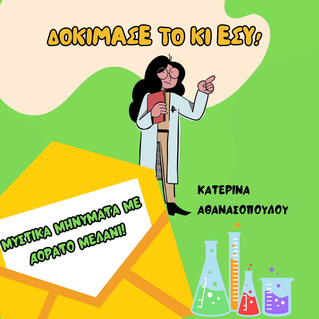 Έχεις ποτέ θελήσει να στείλεις στον φίλο σου ένα μυστικό μήνυμα που κανείς άλλος δεν μπορεί να διαβάσει; Τότε ίσως γνωρίζεις το αόρατο μελάνι—έναν ειδικό τύπο μελανιού που μπορείς να χρησιμοποιήσεις για να γράψεις και που δεν φαίνεται στο χαρτί. Μόνο μετά από ειδική επεξεργασία εμφανίζεται μαγικά και το μήνυμα μπορεί να διαβαστεί. Πώς λειτουργεί αυτό; Ανακάλυψέ το σε αυτή τη δραστηριότητα και γράψε τα δικά σου μυστικά μηνύματα!
