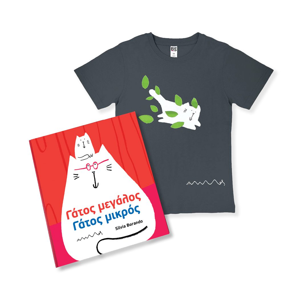 Αν σου κάνει το βιβλίο, φόρεσέ το! – Γάτος μεγάλος – Γάτος μικρός + t-shirt (γκρι)